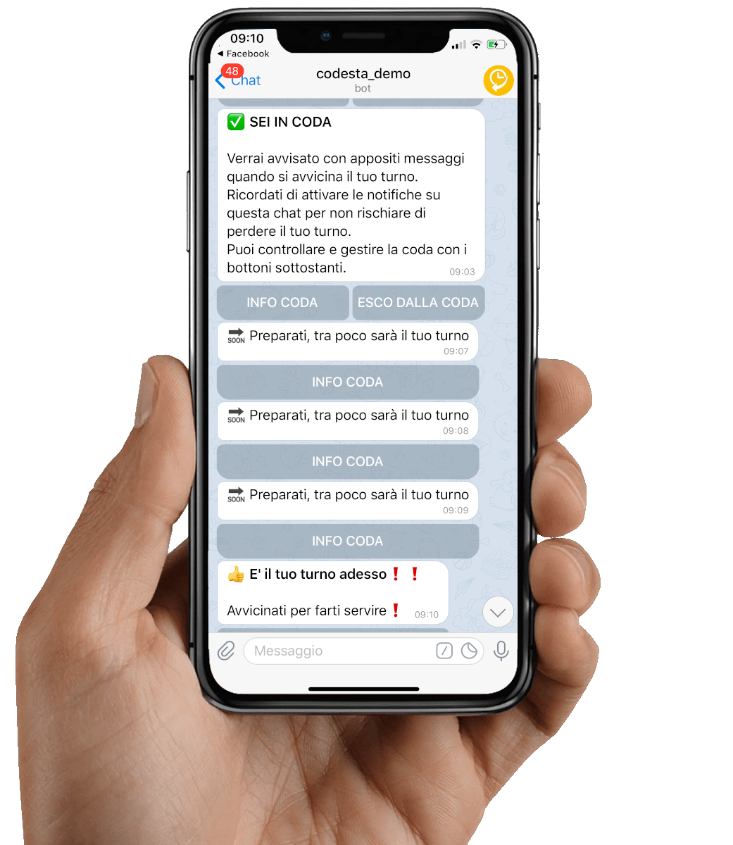 I tuoi clienti potranno ordinare e prenotare il proprio turno a distanza attraverso una semplice chat, evitando così file ed assembramenti